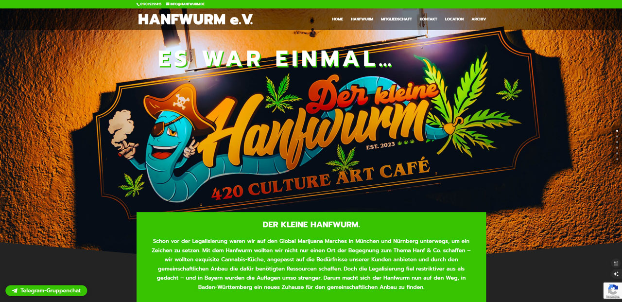 Aus der Figur des kleinen Hanfwurms entstand in zwei Jahren der Hanfwurm e. V. Begleitet wurde das Projekt von Anfang an – vom Branding über zahlreiche Flyer bis hin zur Website. Die enge Zusammenarbeit über diesen Zeitraum formte eine konsistente visuelle Identität und machte den Hanfwurm zu einem wiedererkennbaren Symbol.